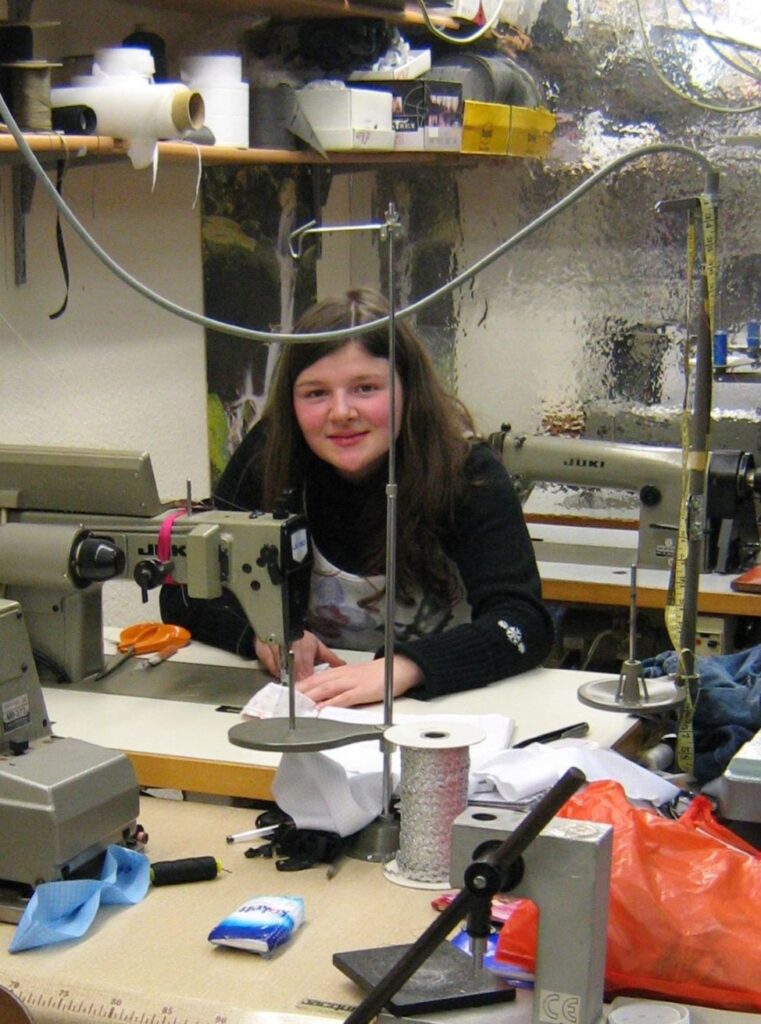 Mit 13 Jahren saß ich dann bei unserer Schneiderin die Straße hoch, zum ersten Mal an der Nähmaschine. Meine Mutter war damals meine erste „Kundin“ und hat mich bestärkt weiter zu machen.